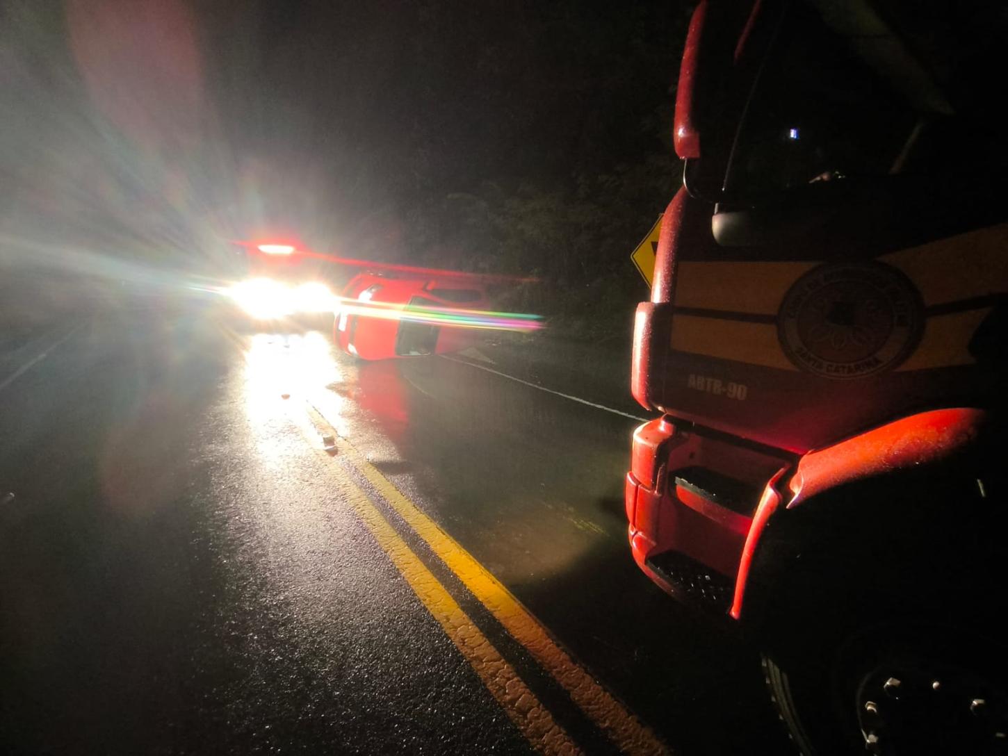 A guarnição foi acionada via Central de emergência, para atendimento de ocorrência de sinistro de trânsito. No local a guarnição constatou tratar-se de sinistro de trânsito do tipo saída de pista seguida de choque em barranco, envolvendo o veículo VW/NOVO GOL 1.0 emplacado no município de Chapecó que era conduzido por uma feminina de 19 anos que se evadiu do local, que tinha como passageira uma feminina de 17 anos, sendo conduzida pelos bombeiros ao hospital de Guaraciaba para observação. No local ainda constatou-se que o veículo estava carregado com 4 fardos de substância análoga a maconha totalizando 130 kg aproximadamente.