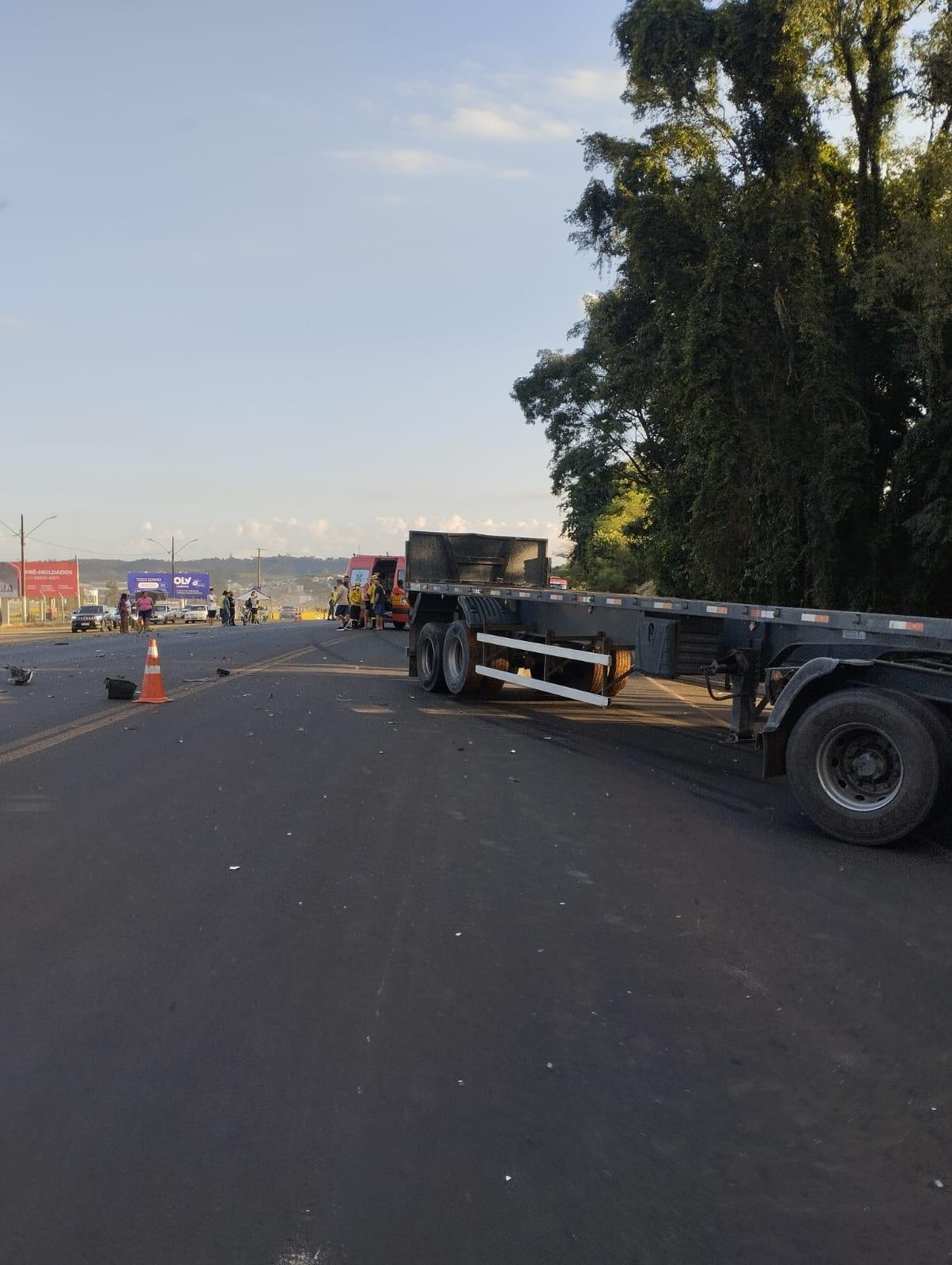 Na manhã deste sábado 921), por volta das 06h52min, o Corpo de Bombeiros Militar de Maravilha/SC, foram acionados para atendimento de ocorrência de acidente de trânsito na BR-282, nas proximidades de um CTG, de Maravilha, envolvendo um veículo de passeio e um caminhão, além de um pedestre.