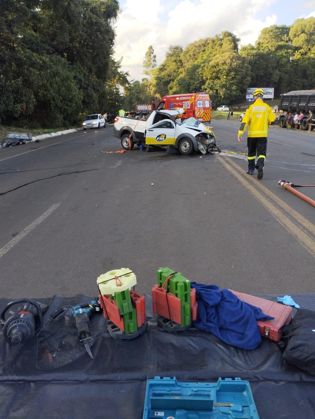 Uma das vítimas, ocupante do veículo de passeio, encontrava-se presa às ferragens e em estado grave, sendo necessário o emprego de técnicas de desencarceramento para sua retirada. Após o resgate, a vítima foi encaminhada ao hospital por equipe de suporte avançado.