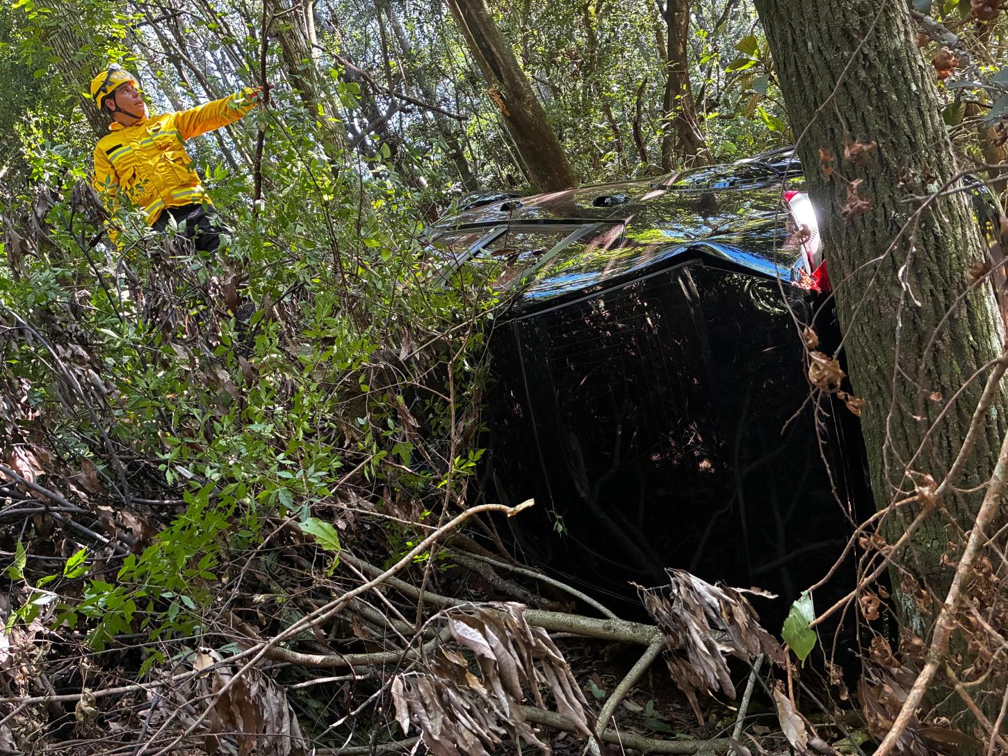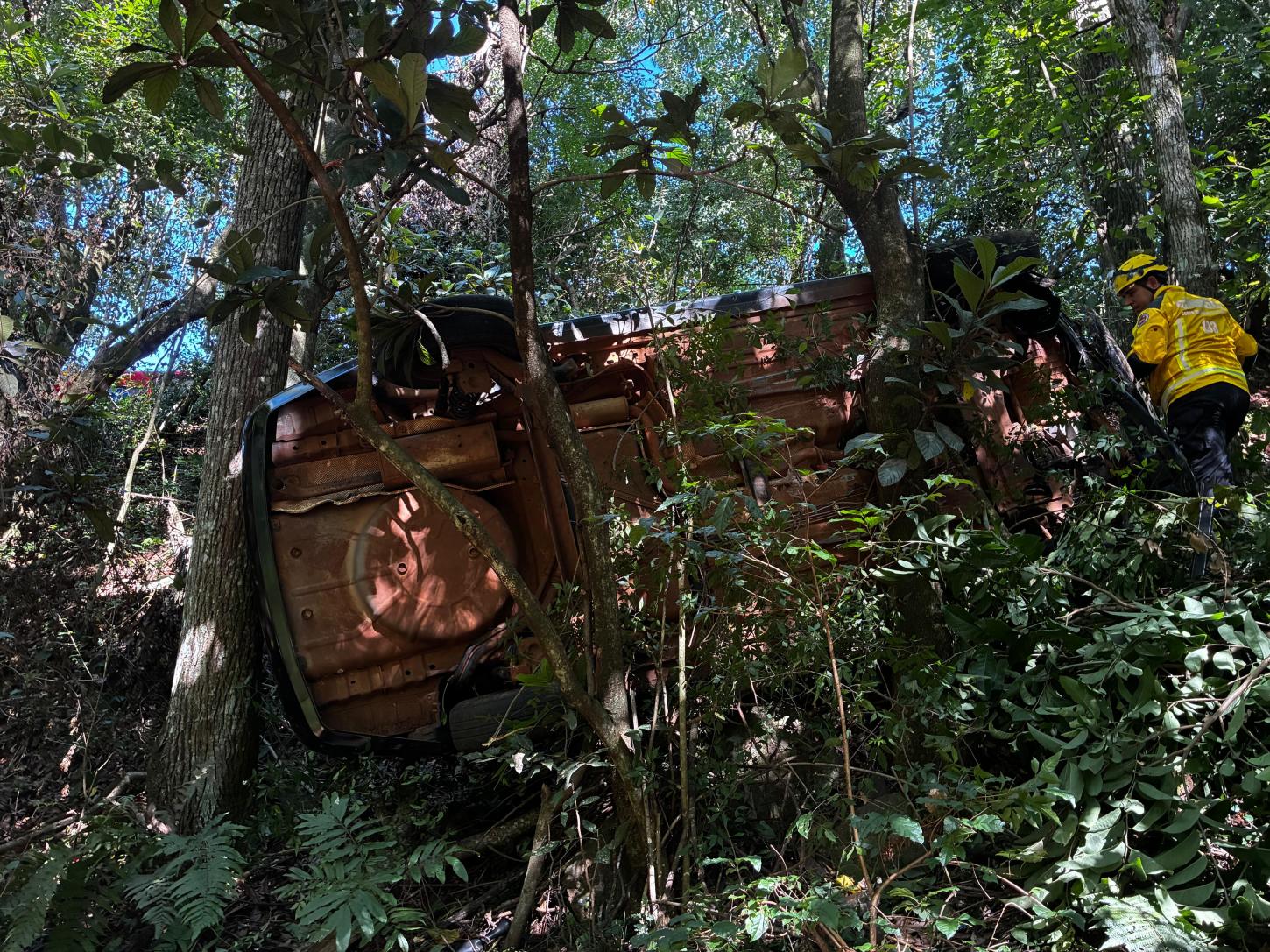 A VÍTIMA RELATOU TER PERDIDO O CONTROLE DO VEÍCULO AO TENTAR LIGAR, VINDO A SAIR DA PISTA E CAIR EM UMA RIBANCEIRA DE APROXIMADAMENTE 7 METROS DE ALTURA, O VEICULO FICOU LATERALIZADO PRESO POR ARVORES.