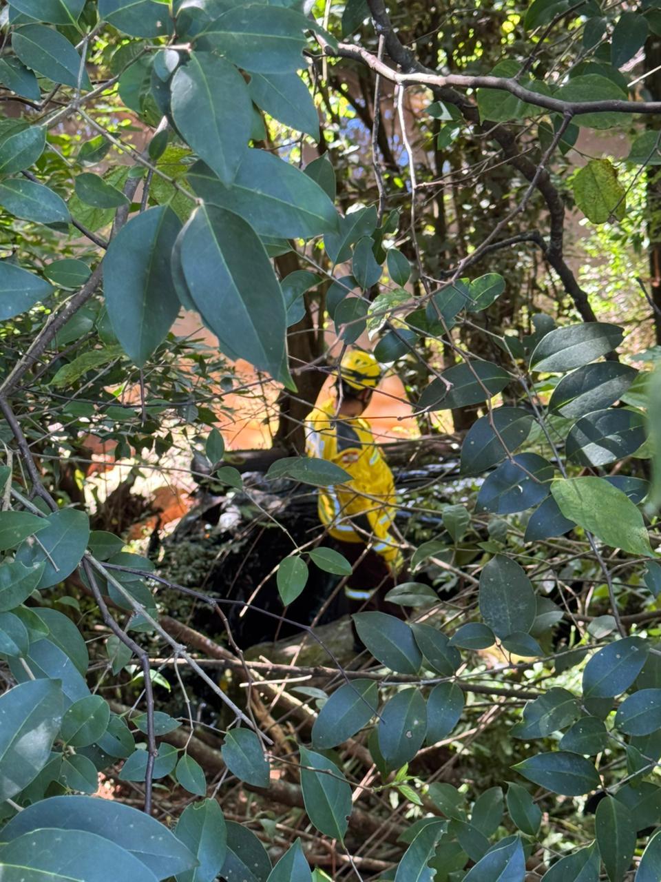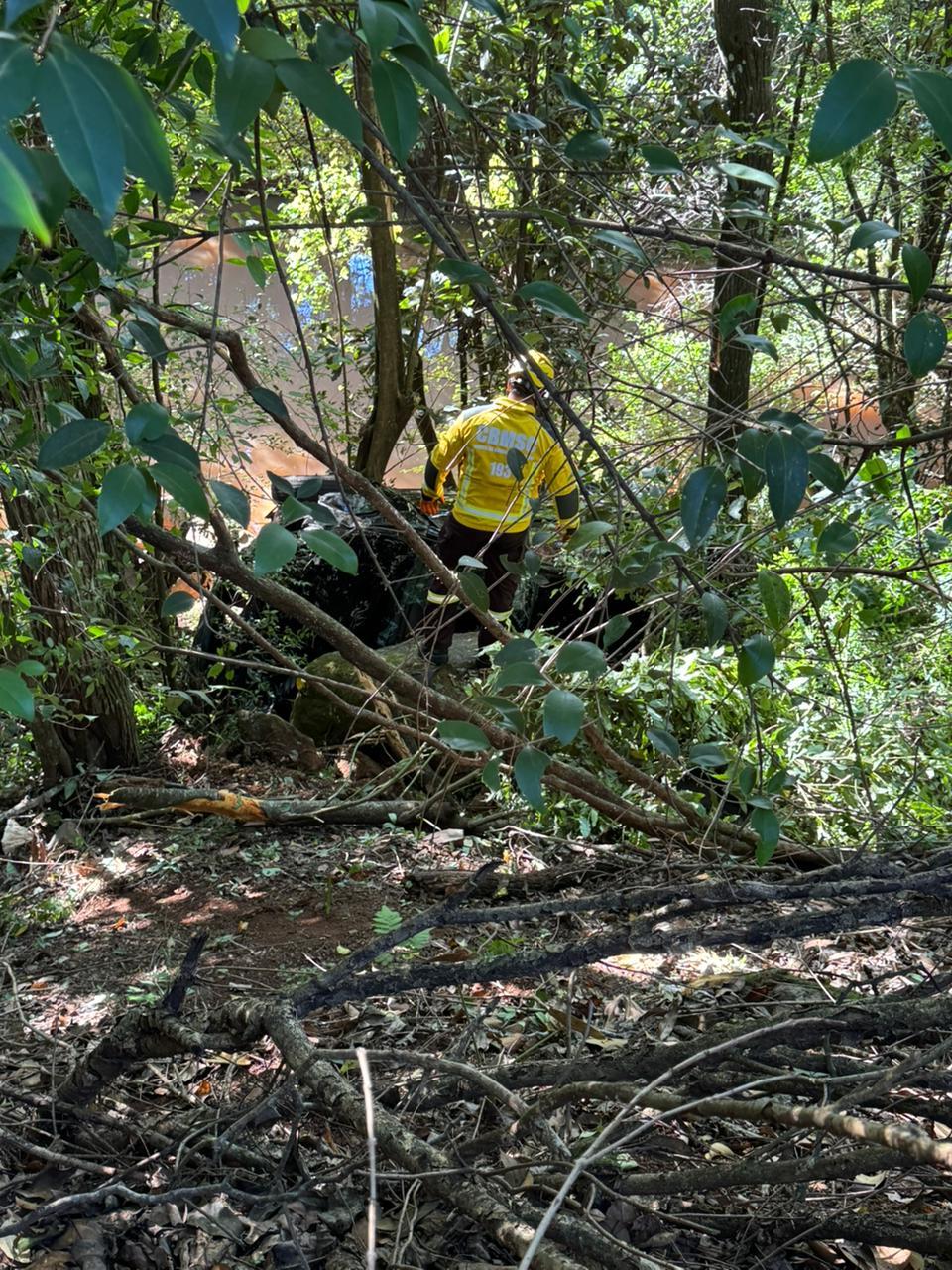 NO MOMENTO DA CHEGADA DA GUARNIÇÃO, A VÍTIMA JÁ SE ENCONTRAVA FORA DO VEÍCULO, SENTADA À MARGEM DA VIA, APRESENTAVA ESCORIAÇÕES PELO CORPO, QUEIXAVA-SE DE LOMBALGIA E POSSUÍA CORTES DECORRENTES DO CONTATO COM OS VIDROS DO VEÍCULO.