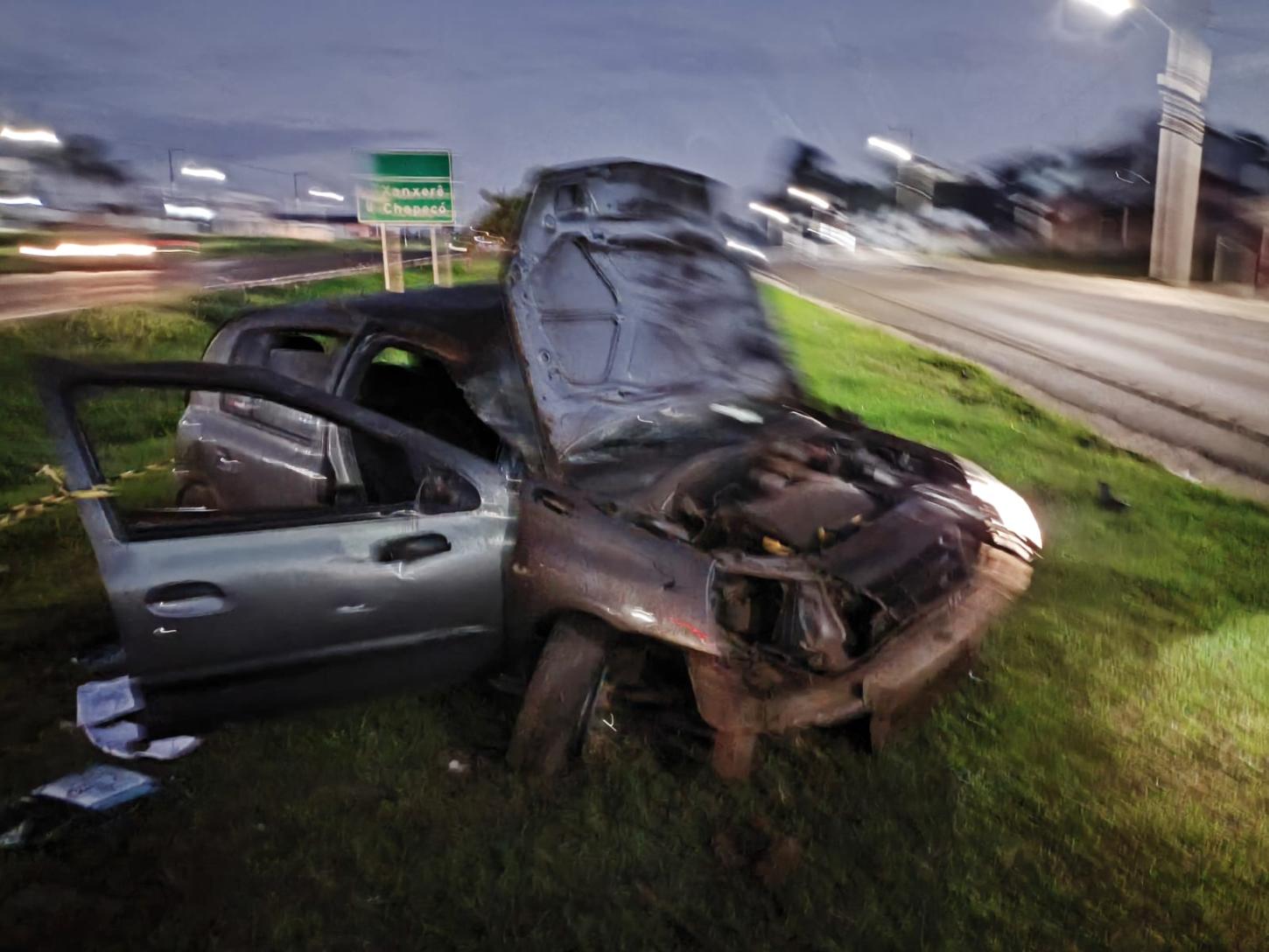 Na manhã deste domingo (05), as 05h46min, o Corpo de Bombeiros Militar de Santa Catarina, por meio da guarnição de Ponte Serrada, atendeu uma ocorrência de acidente de trânsito na BR-282, em Ponte Serrada, envolvendo um veiculo de passeio. Ao chegar ao local, a equipe confirmou a natureza da ocorrência, constatando tratar-se de uma saída de pista seguido de capotamento.
