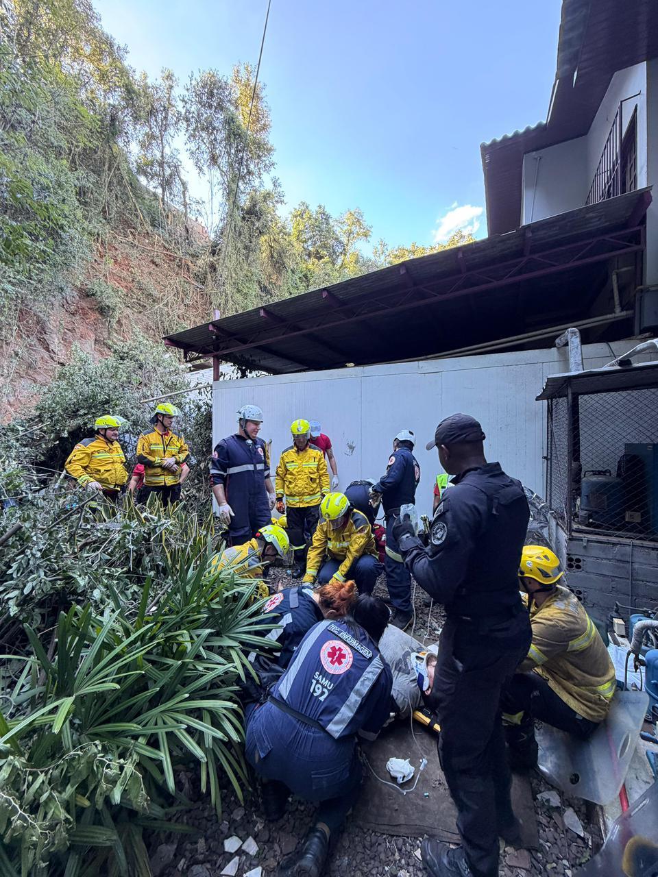 Após 5 horas de trabalho e com os membros liberados foi possível realizar a extração da vítima, consciente e orientada.