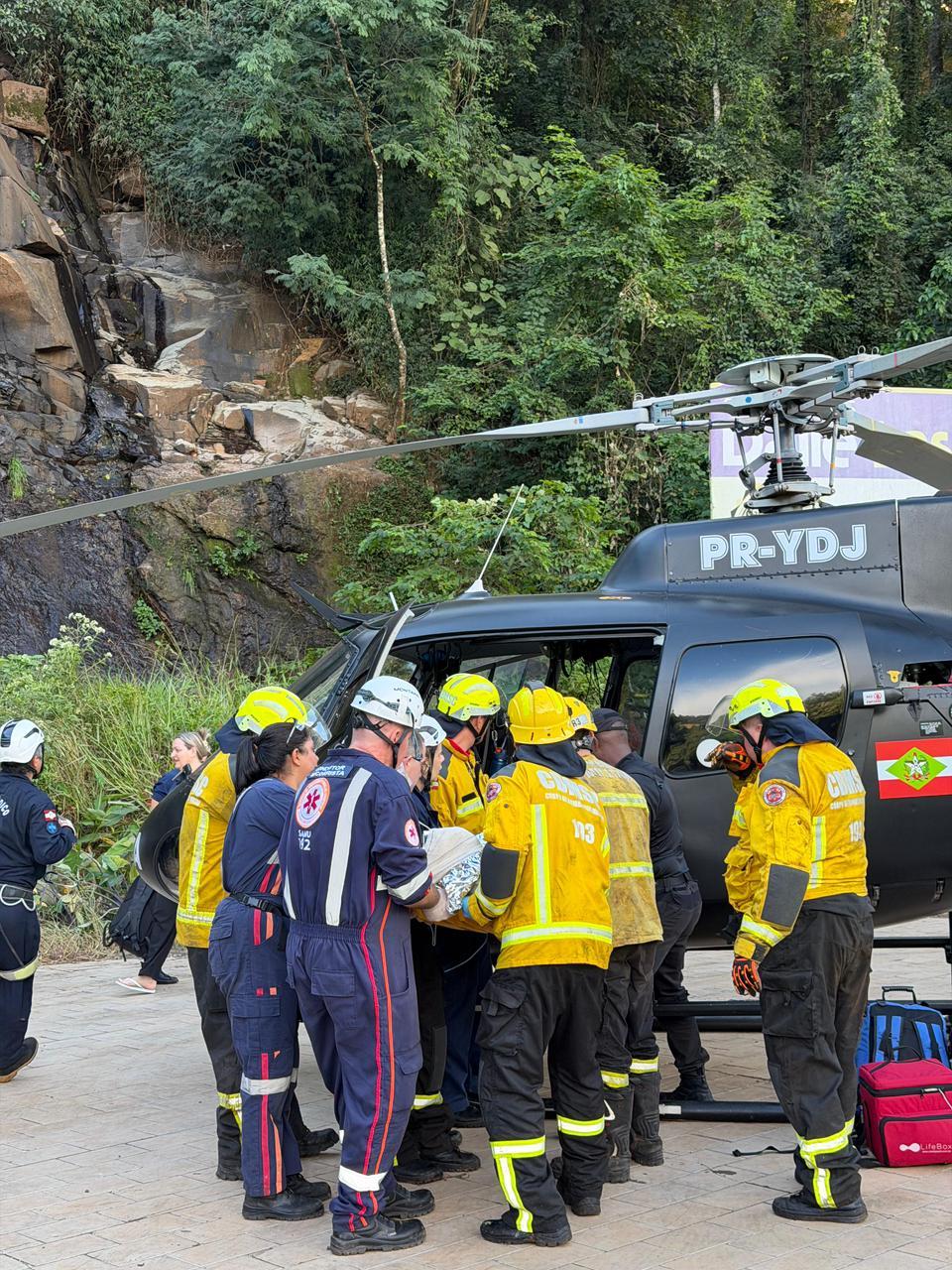 Ao ter acesso no membro superior direito da vítima, a equipe médica do SAMU/SAER realizou acesso com medicações. Posteriormente, foi dado continuidade no trabalho de desencarceramento da vítima, sendo possível livrar seu membro superior esquerdo. Assim que foi possível desencarcerar o membro inferior esquerdo, foi constatado fratura exposta na região da tíbia e fíbula, apresentando inclusive hemorragia exsanguinante e de imediato foi colocado torniquete, cessando-a.