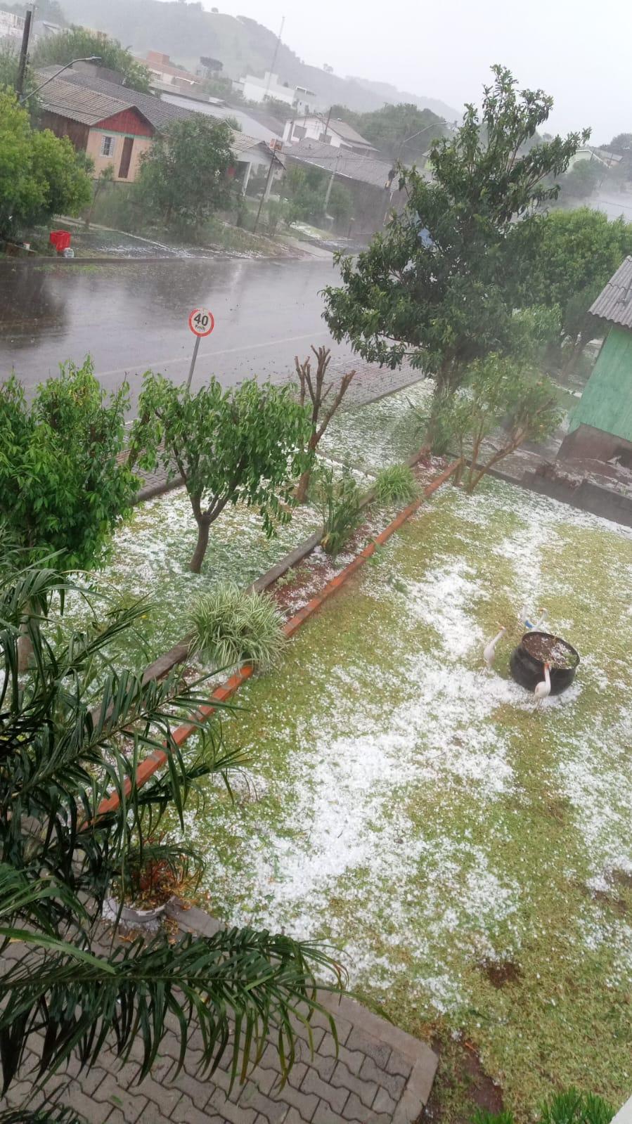 Por volta das 14h00min, a chuva veio, mas com ela veio também o granizo, depois de uma temperatura alta no últimos dias e um sol ardente, veio a chuva acompanhada de um forte granizo que danificou residências e plantações no Oeste Catarinense.