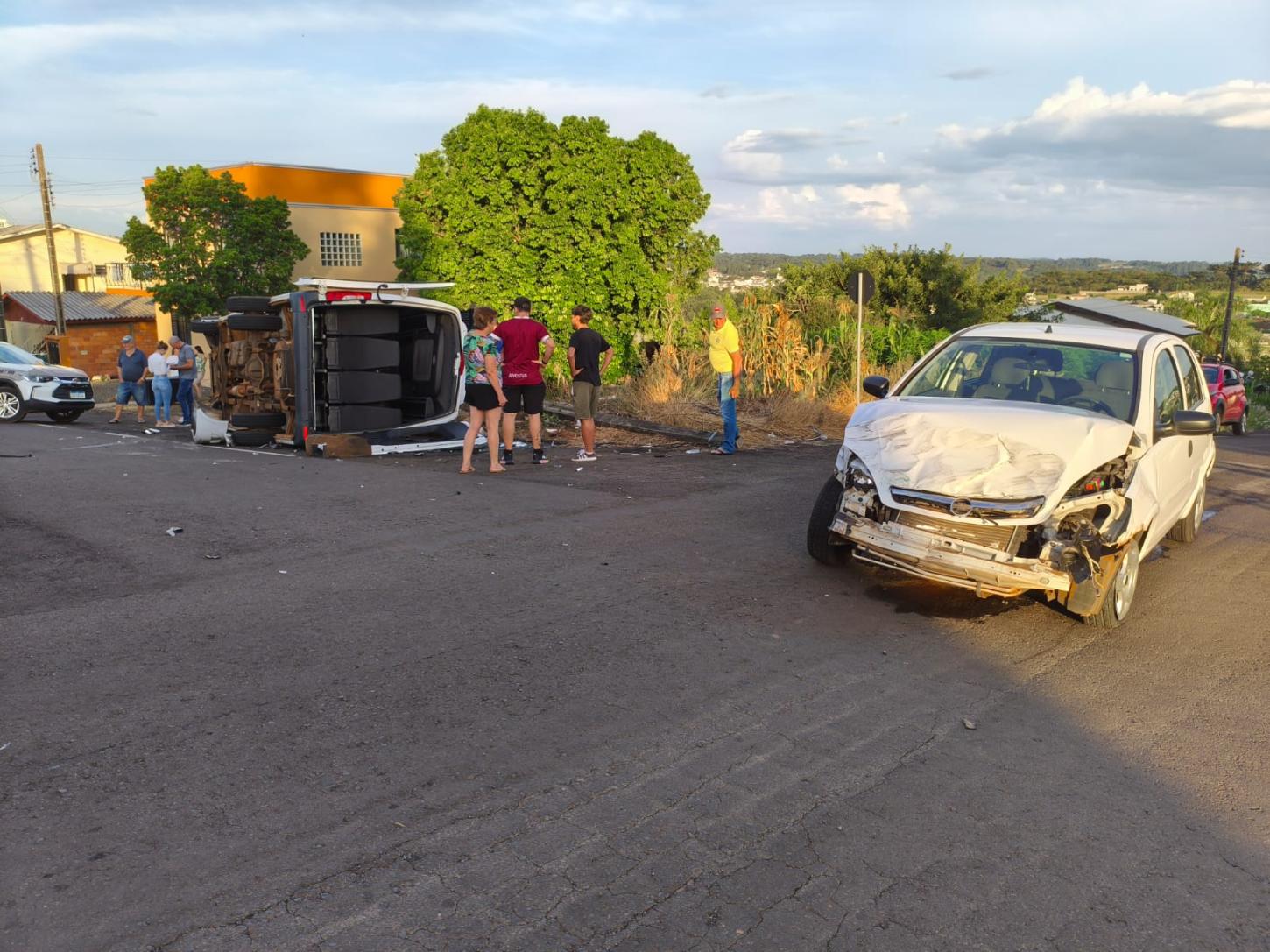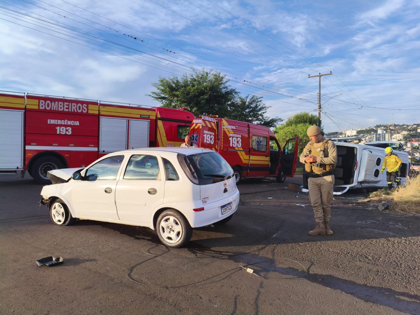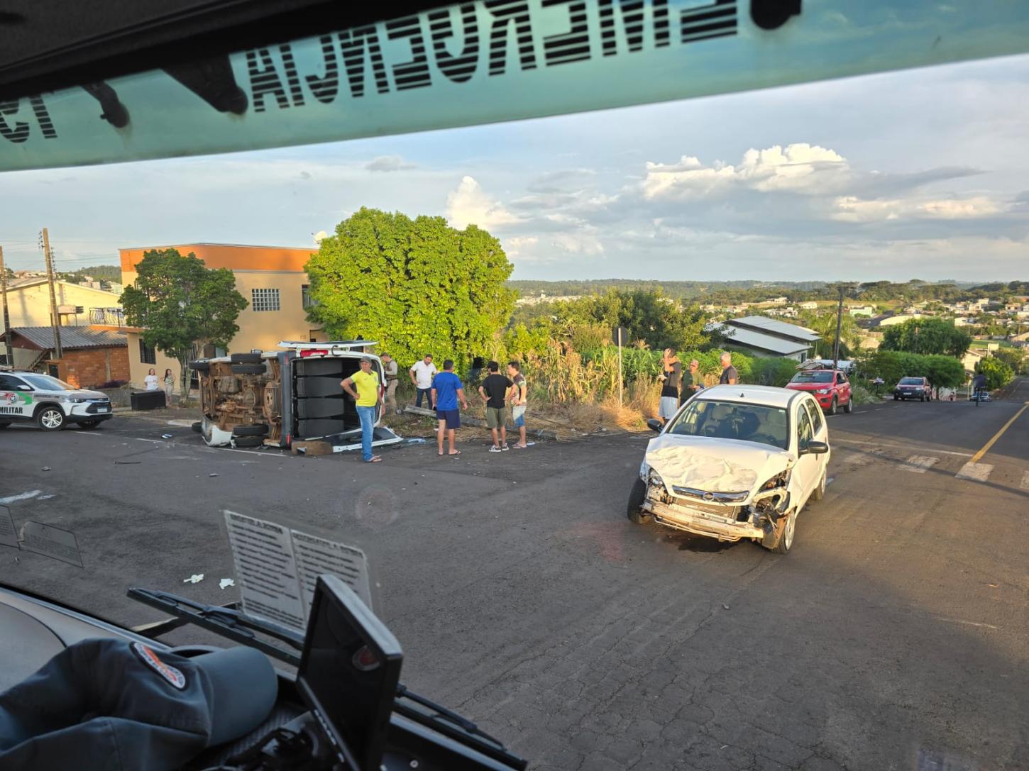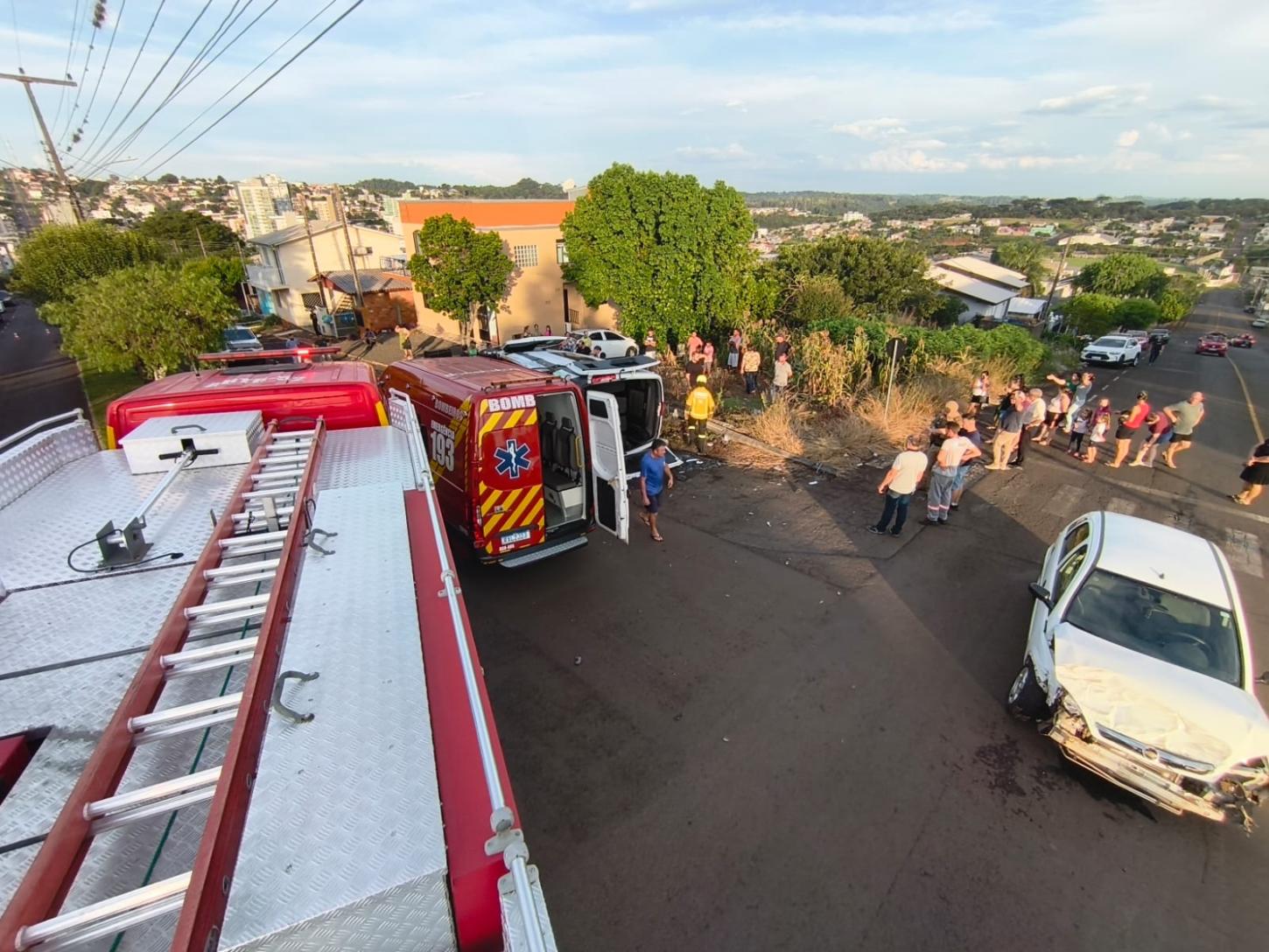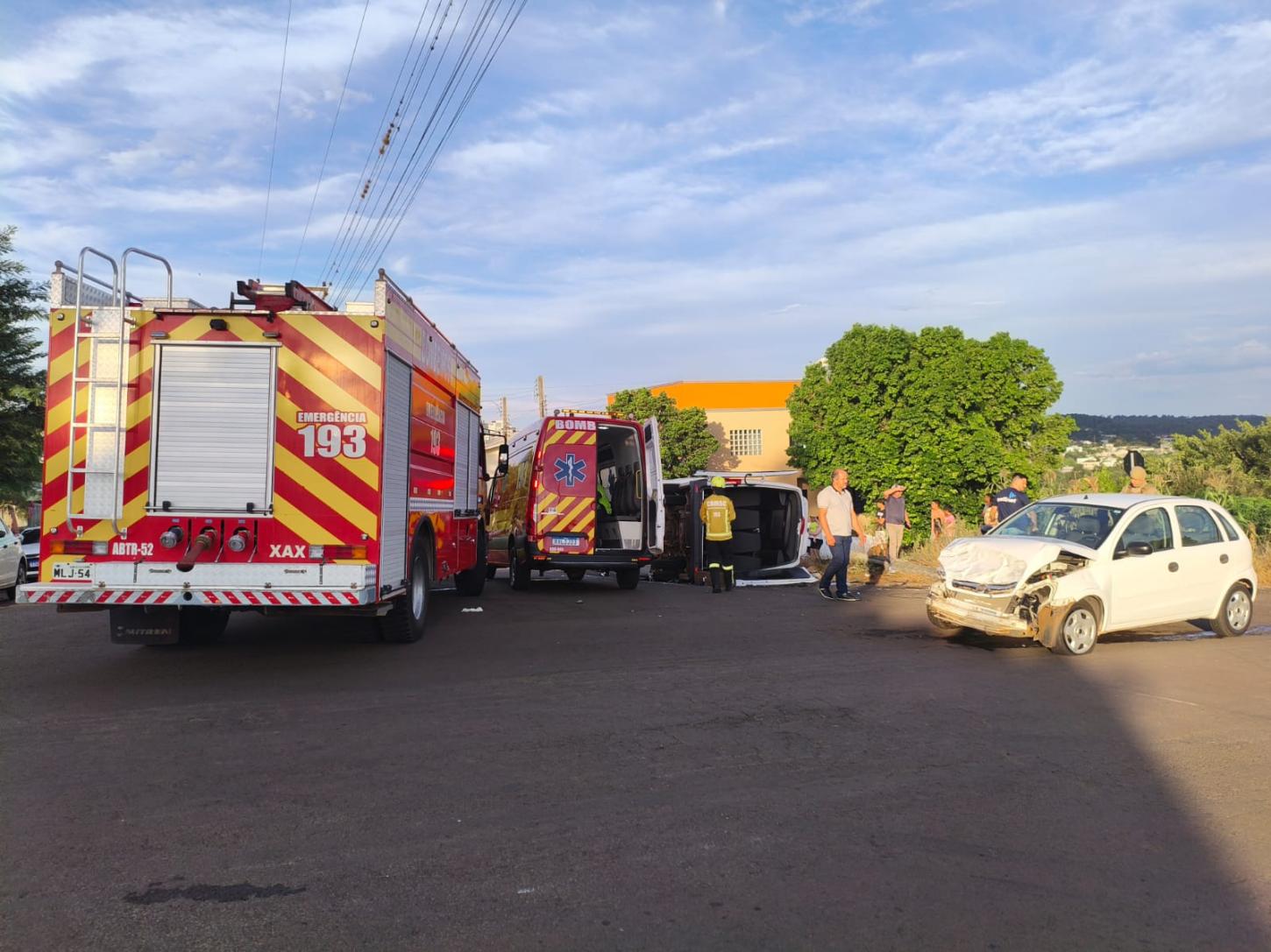 Ao chegar no local a GU deparou-se com colisão carro x van escolar, com seis vítimas, sendo duas no carro e quatro na van.