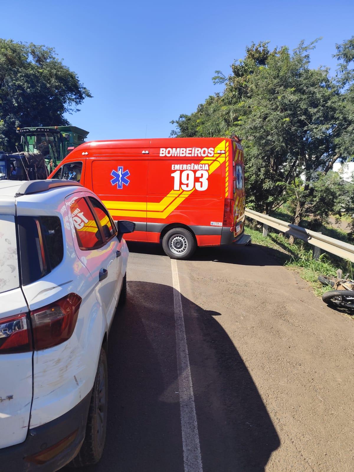 Na manhã de hoje (28), as 11h40min, a guarnição do Corpo de Bombeiros Militar de Pinhalzinho, atendeu a acidente de trânsito do tipo colisão traseira entre motocicleta Honda CG e veículo Ford Eco Esport, BR-282, Bairro Centro Oeste, em Pinhalzinho/SC.