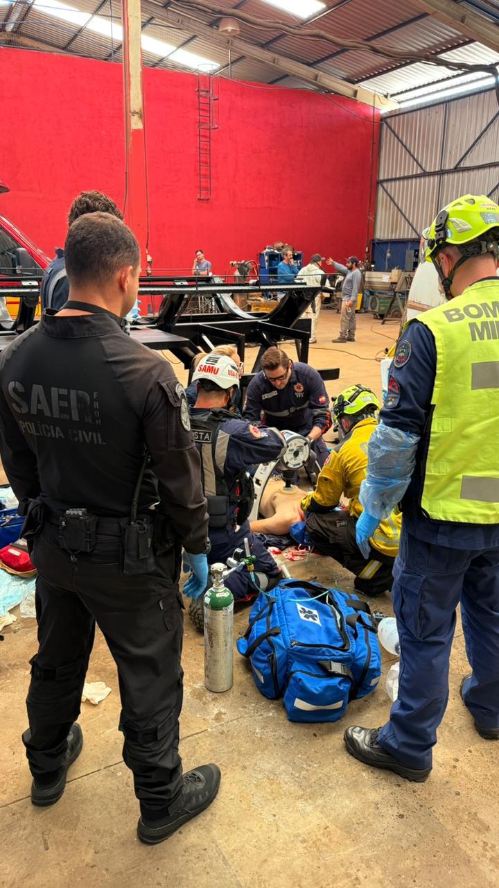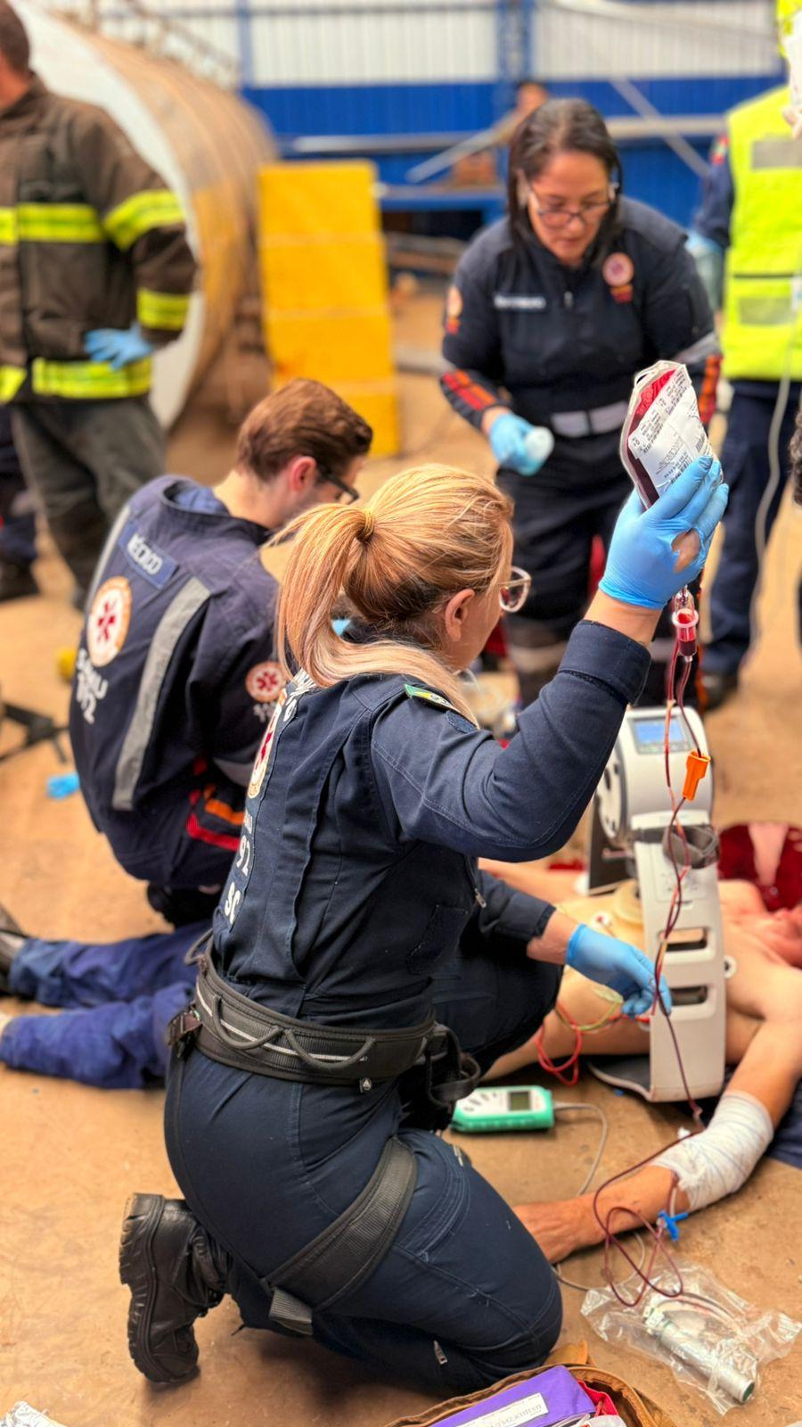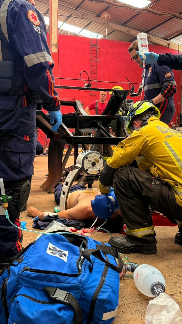 Com a chegada da equipe médica Iniciou-se de imediato manobras de reanimação e foi utilizada uma bolsa de Sangue e após 20 minutos de reanimação e a transfusão de sangue, sendo revertida a parada e com o retorno da circulação espontânea a vítima foi transferida para o HRO em Chapecó.
