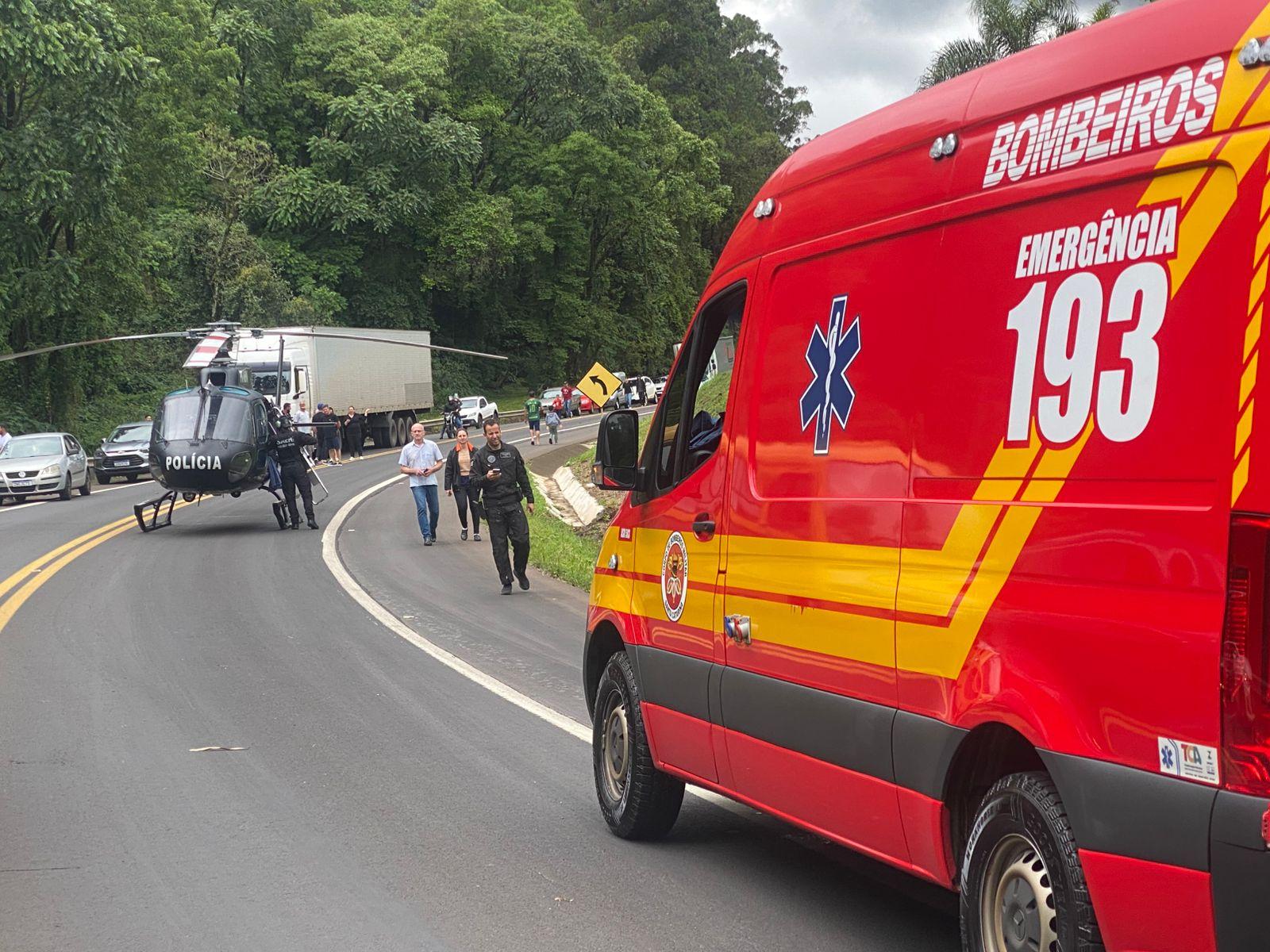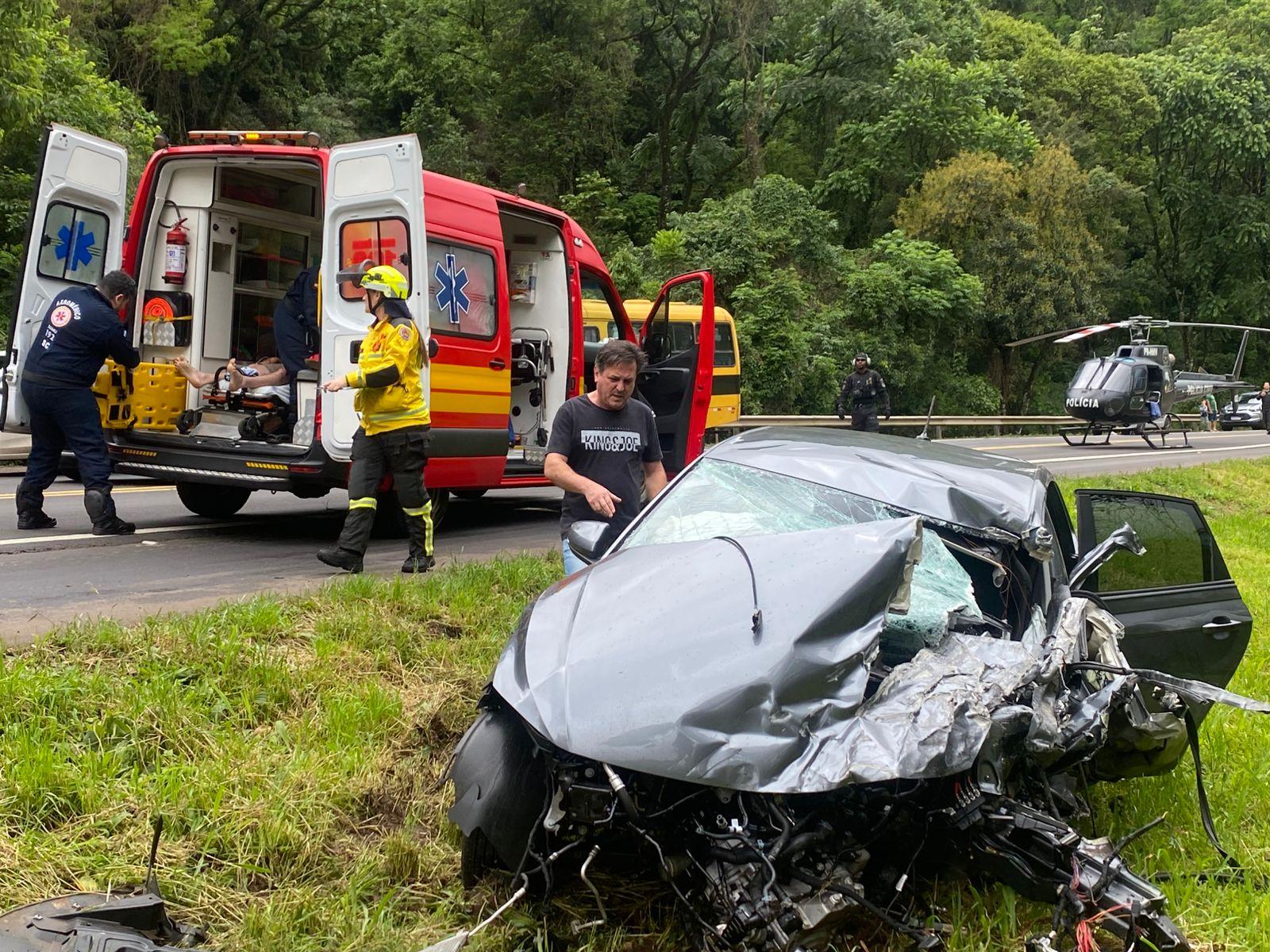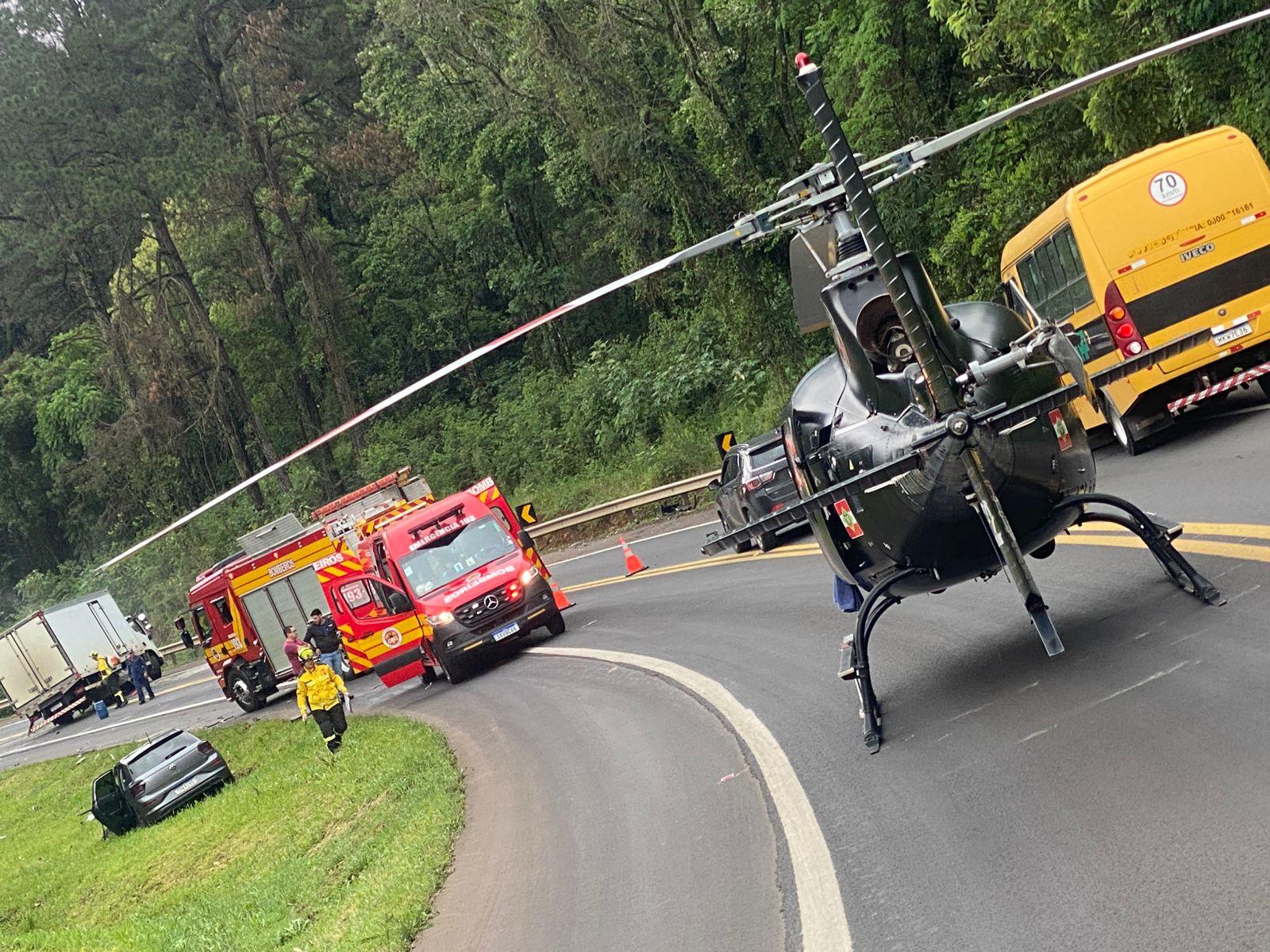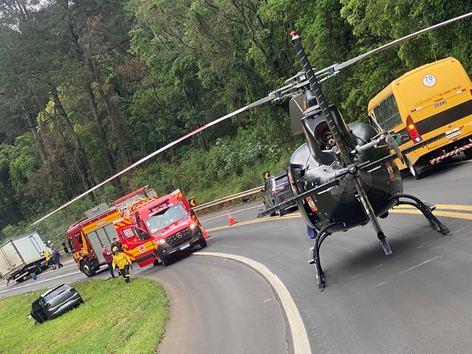 No automóvel foi desencarcerada vítima masculina, inicias R.M.S. de 37 anos, apresentando múltiplas escoriações, fratura membro superior e traumas, que após estabilizado pela equipe aeromédica, foi transportada pela aeronave até ao HRO de Chapecó para sequência na avaliação, exames específicos e atendimento especializado.