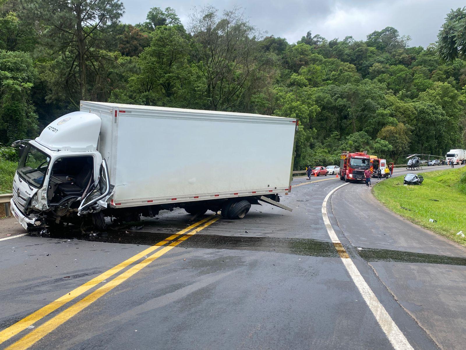 Cinemática grave no local, com danos de elevada monta e vazamento de óleos e combustíveis sobre a pista.