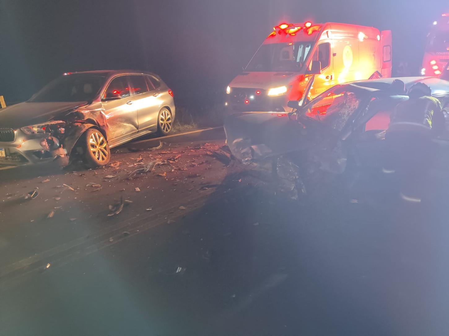 Trata-se de ocorrência de Sinistro de Trânsito tipo colisão frontal, ocorrido no dia 28/02/2026 por volta das 19h45min, na Rodovia SC-484, km 22,550, no interior do município de Caxambu do Sul-SC, o qual foi atendido pela Guarnição PMRv acionada pela central 198.
