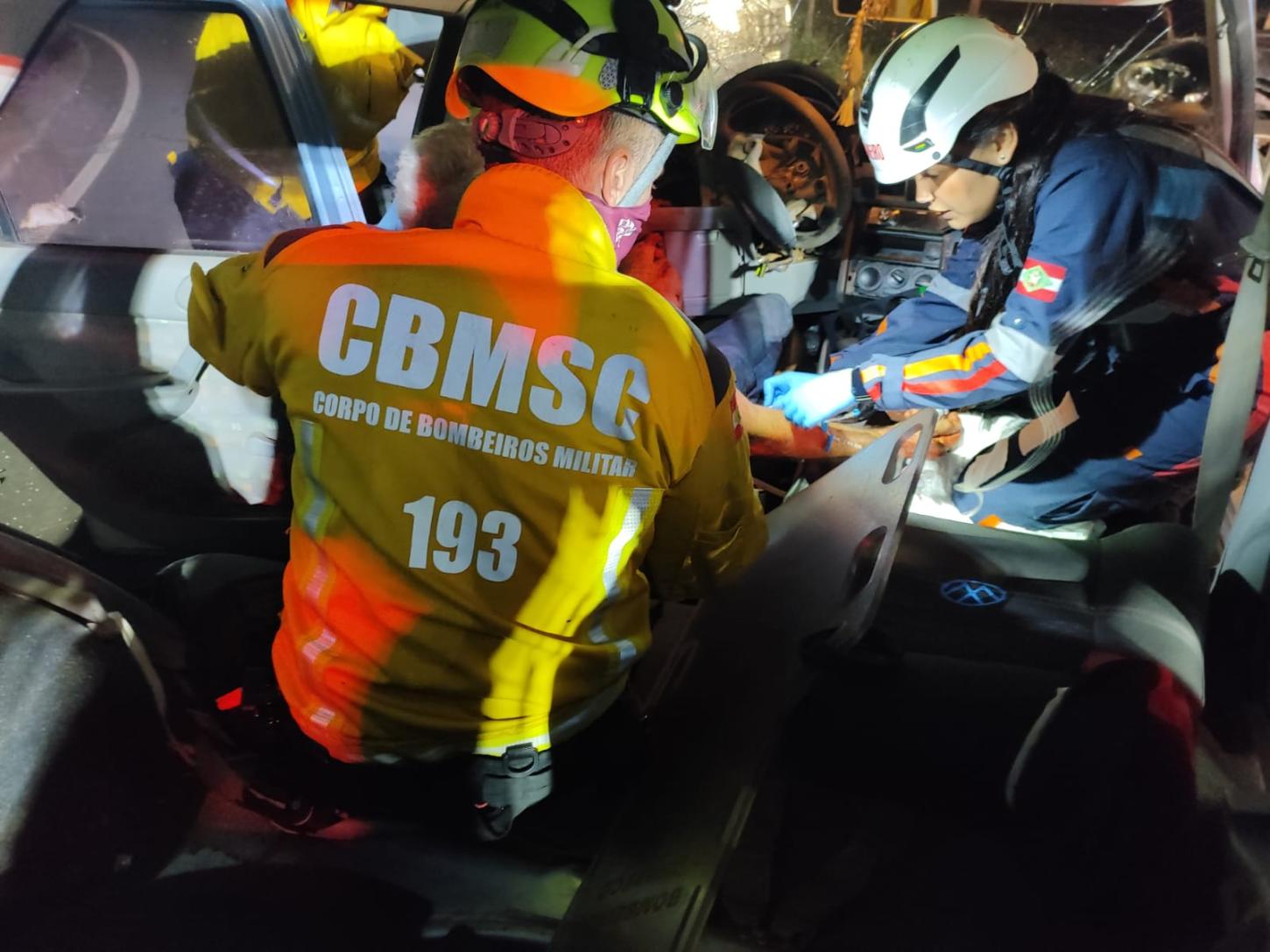 No local constatou-se o sinistro envolvendo o VW/GOL placas de Caxambu do Sul-SC, conduzido por um masculino de 68 anos (lesionado) e encarcerado e o BMW/X1 placas de Chapecó-SC, conduzido por um masculino de 33 anos (ileso).