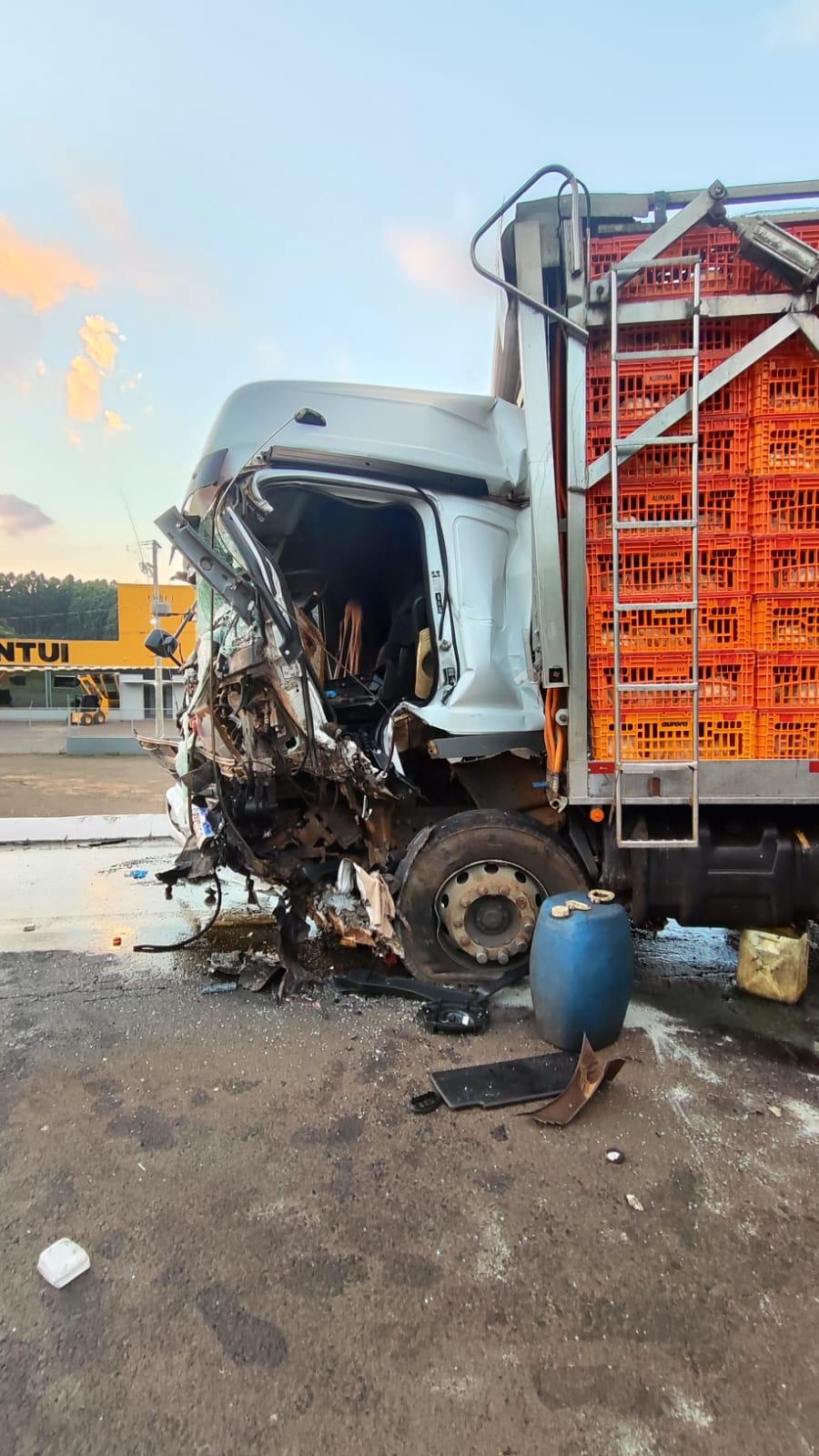 Por sua vez, o caminhão era ocupado por três pessoas, sendo condutor, de 56 anos, consciente e orientado, estava em encarceramento físico tipo II pelo painel do caminhão, apresentava suspeita de fratura na perna direita e referia dores na região da coluna lombar e quadril. Inicialmente foi estabilizado pela equipe médica da USA SAMU, para após iniciar o desencarceramento. Foi extraído, reavaliado e conduzido ao HRO pela guarnição do ASU 583.