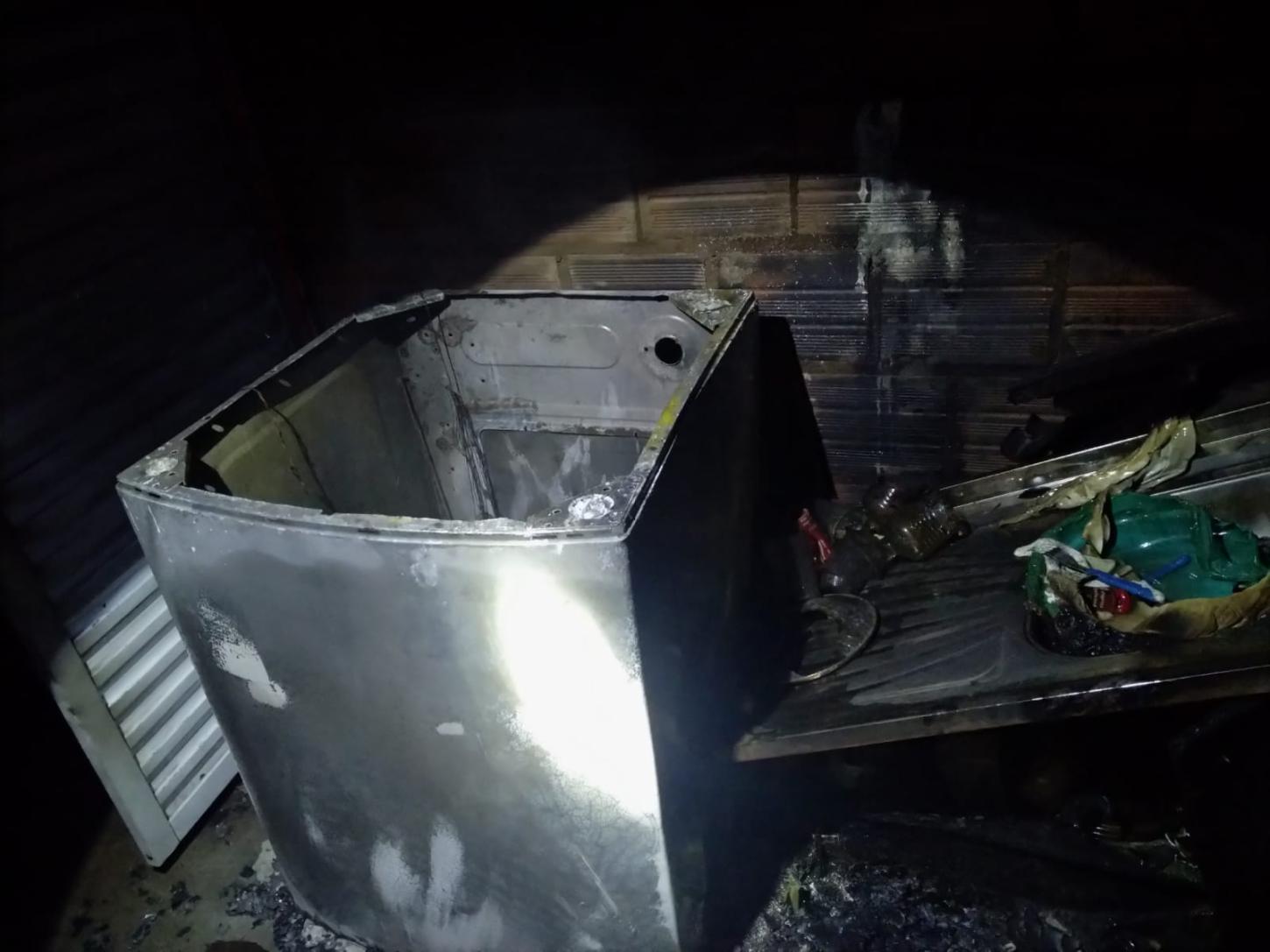 Após verificação, observou-se que o foco inicial possivelmente teve origem na fiação que alimentava uma chaleira elétrica. Durante a inspeção, identificou-se vazamento no botijão de GLP, o qual foi removido para uma área externa segura. Além disso, foi localizado um pequeno foco remanescente de incêndio, que foi completamente extinto pela guarnição, utilizando aproximadamente 50 litros de água.
