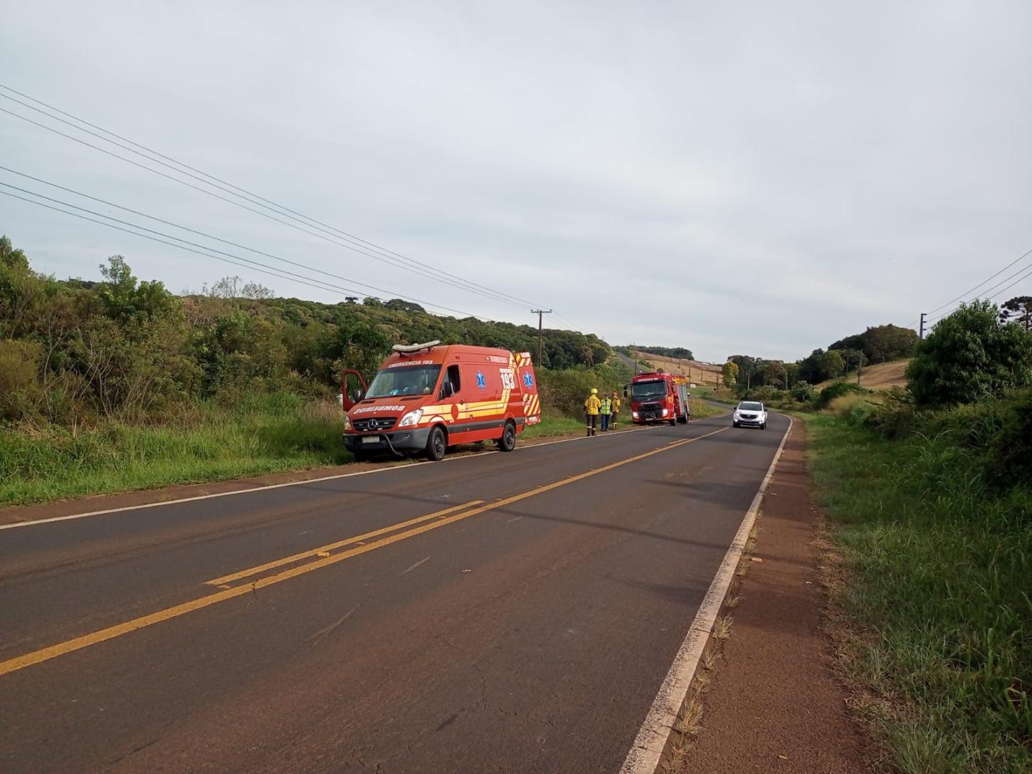 A guarnição do 14º Batalhão de Bombeiro Militar, com sede em Xanxerê, foi acionada por volta das 16h00, desta seguna-feira (20), para atendimento a uma ocorrência de acidente de trânsito do tipo saída de pista na rodovia SC-480, no trecho que compreende o deslocamento entre os municípios de Xanxerê e Bom Jesus. No local, foi constatado tratar-se de uma caminhonete, modelo Saveiro, com placas padrão Mercosul, a qual trafegava no sentido Xanxerê–Bom Jesus quando, por circunstâncias não esclarecidas no momento do atendimento, veio a perder o controle da direção, saindo da pista de rolamento e parando às margens da rodovia.