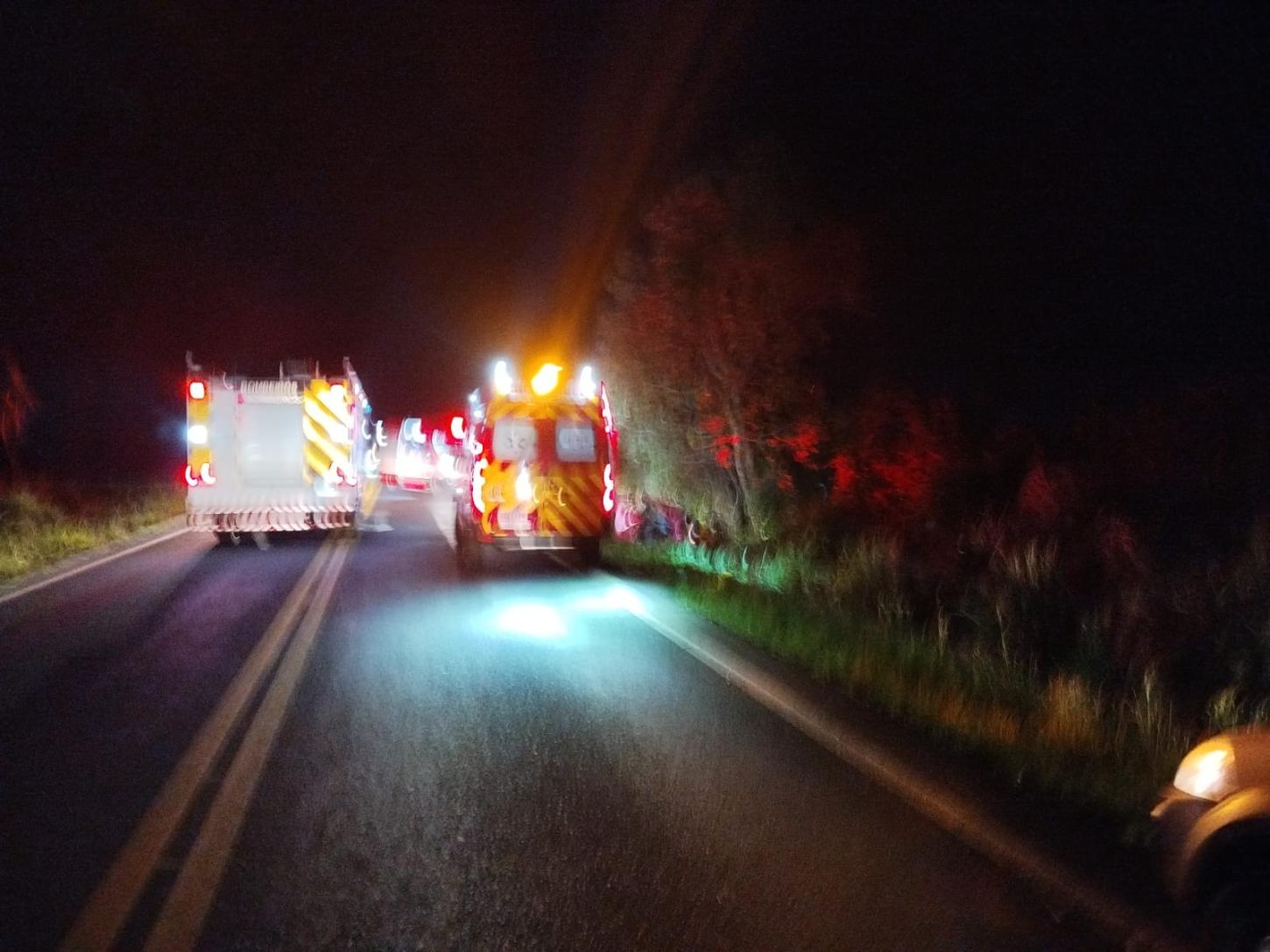 Na madrugada desta quinta-feira (20), o trem de socorro de São Lourenço do Oeste, composto pela ASU-560 e pelo ABTR-111, foi acionado, às 03h28min, para atendimento de ocorrência de trânsito do tipo saída de pista seguido de capotamento, na PR-158, no município de Vitorino-PR.