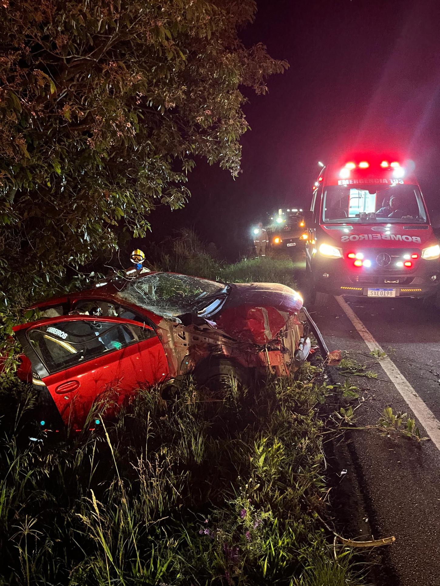 Ao chegar no local, as equipes encontraram um veículo às margens da rodovia, com danos extensos decorrentes da saída de pista. No interior do automóvel, no banco traseiro, havia um ocupante masculino encarcerado, em posição tipo físico 1, inconsciente, porém com momentos de desorientação, e apresentando suspeita de fratura em membro superior direito, além de escoriações generalizadas.