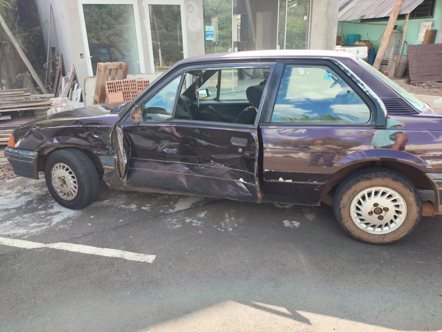 No veículo Monza, conduzido por idoso O. S., que permaneceu no local do acidente e sofreu apenas escoriações leves, causadas pela quebra dos vidros.