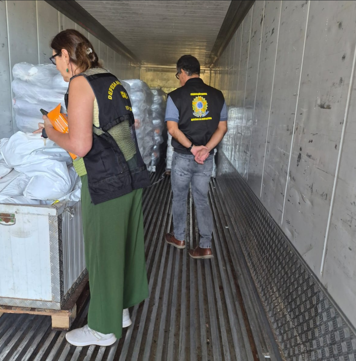Diante da identificação de graves irregularidades sanitárias e da suspeita de fraude alimentar, o frigorífico foi interditado, o depósito lacrado e amostras foram coletadas para análise laboratorial.