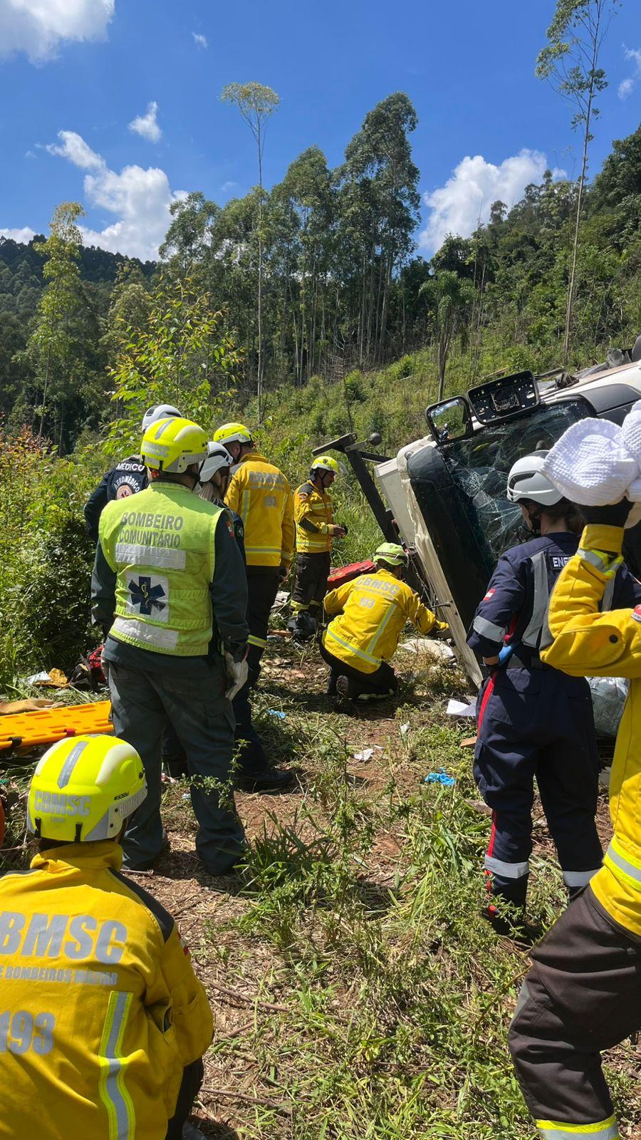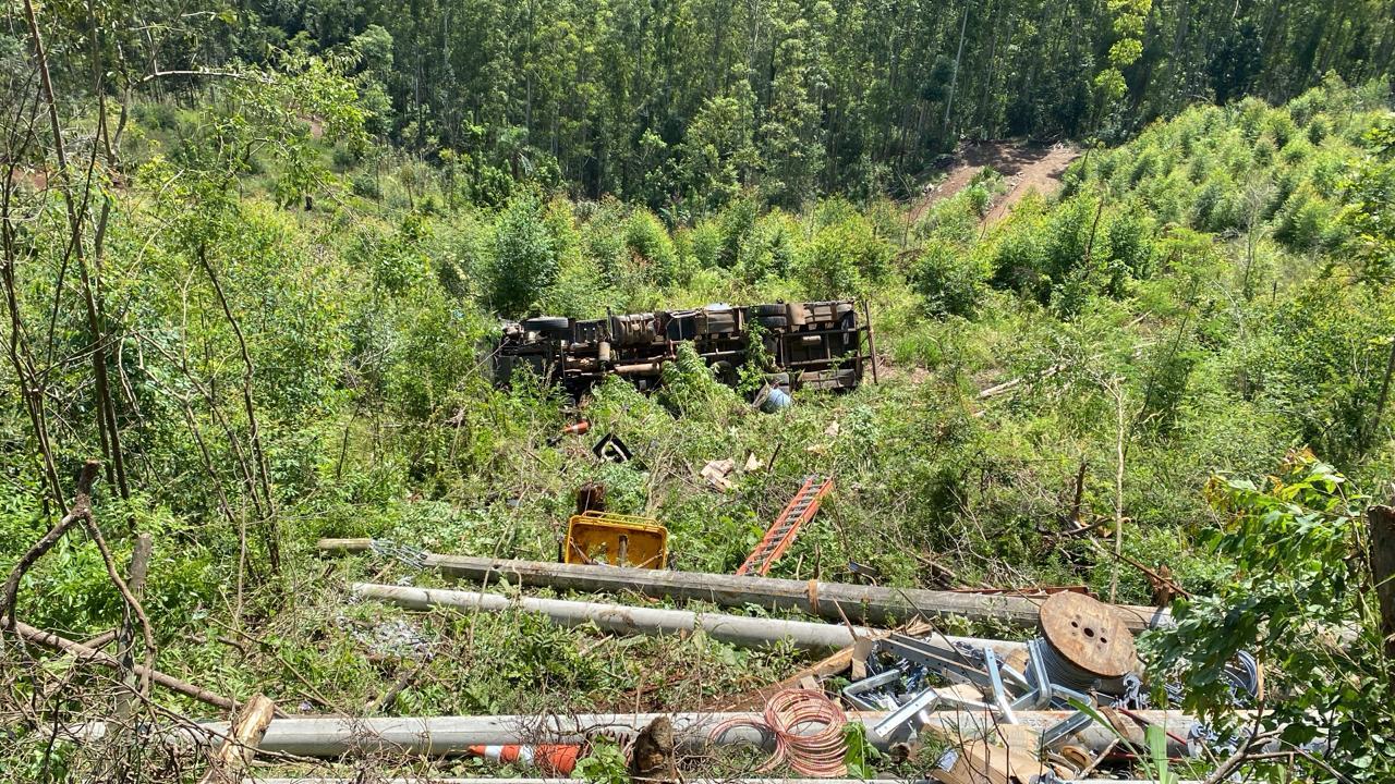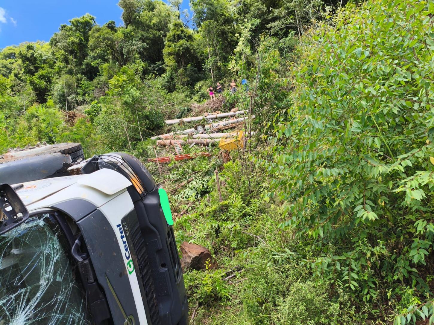 A guarnição do Corpo de Bombeiros Militar, do quartel de Xaxim, foi acionada por volta das 11h50min, desta quinta-feira (26), para atendimento de um sinistro de trânsito do tipo queda de ribanceira envolvendo um caminhão da concessionaria de energia do tipo muque, na Linha São Valentim, interior de Xaxim/SC.