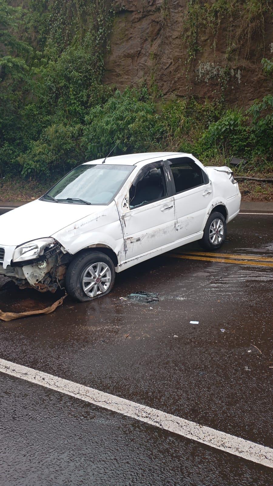 Na tarde deste sábado (01), as 13h04min, a PMRv atendeu a um sinistro envolvendo um Fiat/Siena do município Cordilheira Alta/SC, que saiu de pista chocando-se no barranco e capotando sobre a pista.
