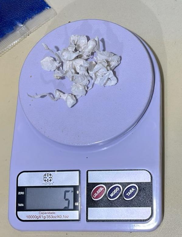 Com o auxílio de cães farejadores, os policiais localizaram 239 porções de crack e 34 buchas de cocaína prontas para a venda, além de uma balança de precisão, um smartphone e uma motocicleta. Os envolvidos foram conduzidos à unidade policial para os procedimentos cabíveis.