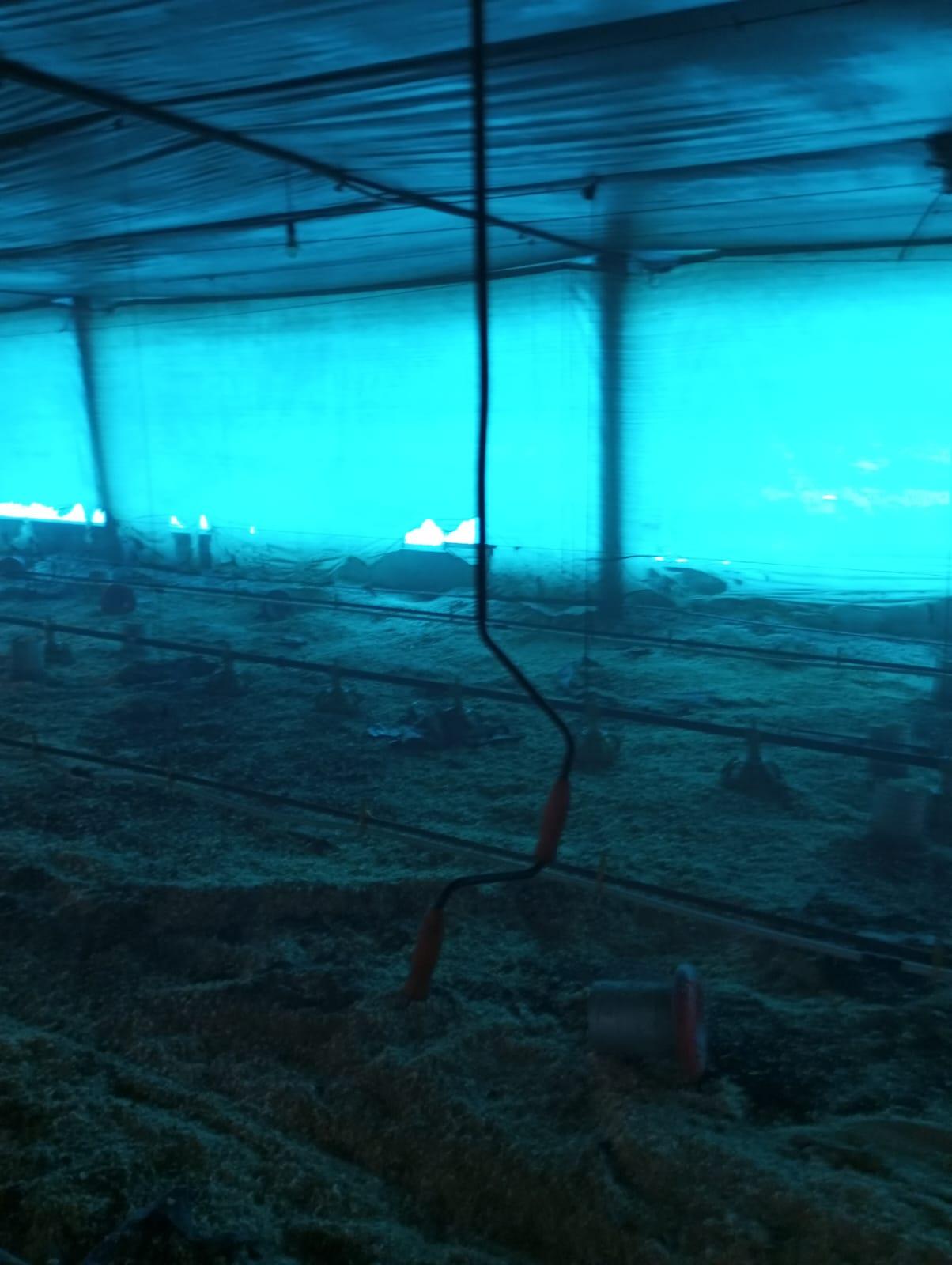 Ao chegar ao local, constatou-se que o sinistro concentrava-se na cama do aviário — composta por maravalha — abrangendo uma área total de aproximadamente 1.960 m².