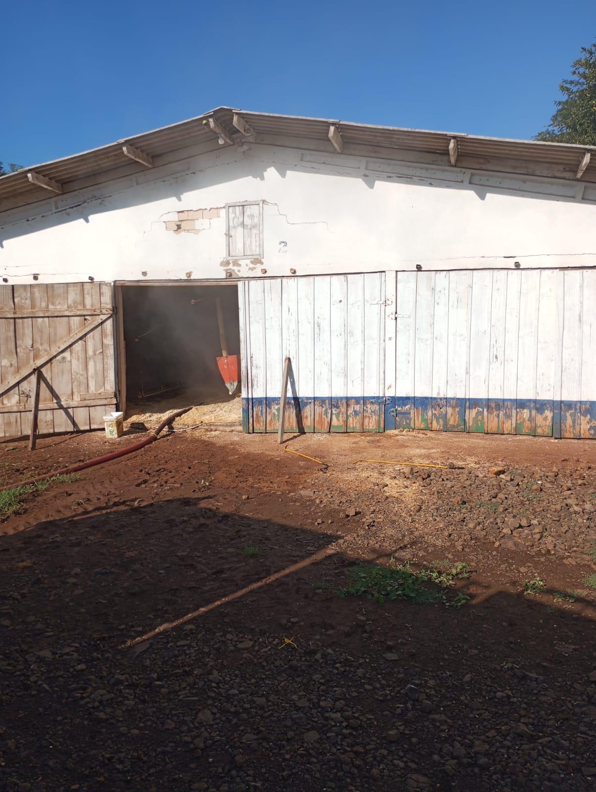 Por volta das 07:30 horas, desta terça-feira (31), a guarnição atendeu a um chamado de incêndio em um galpão situado na localidade de Linha Caraíba interior de Seara.